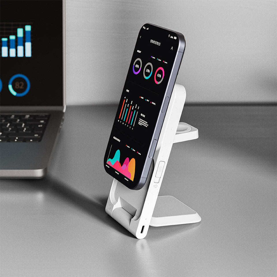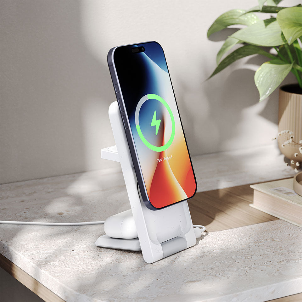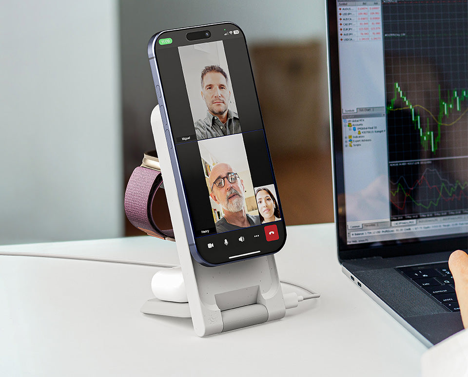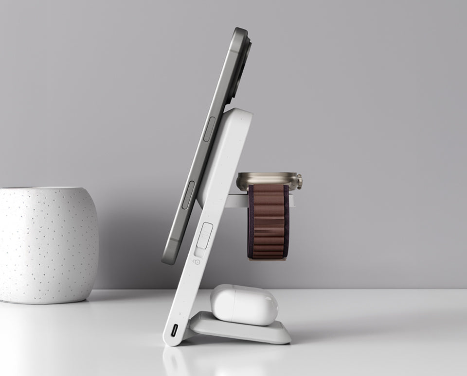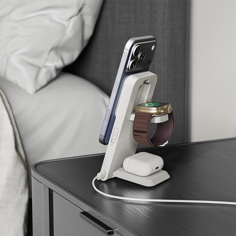Yes, ARIA delivers 15W fast wireless charging for Qi2-enabled iPhones (iPhone 12 and newer) and fast charging speeds for Apple Watch and AirPods. A 30W wall adapter (sold separately) is recommended for best performance.