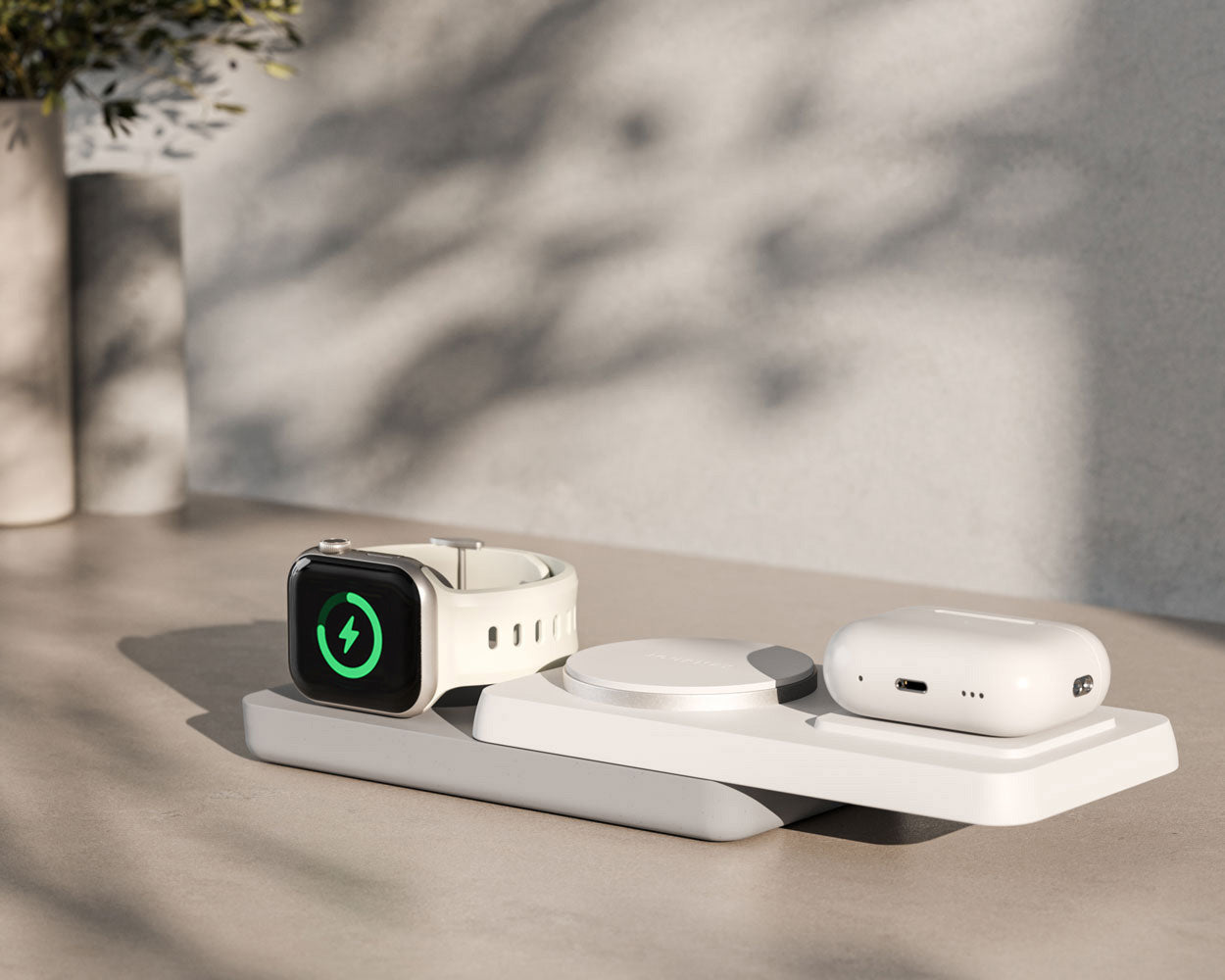 The Glyde is a versatile charging station that keeps your devices powered wherever you are. This 4-in-1 charger features wireless charging for iPhone, Apple Watch, AirPods and another USB-C device via cable. It has a built-in 10000mAh power bank, and a retractable design for ultimate portability.