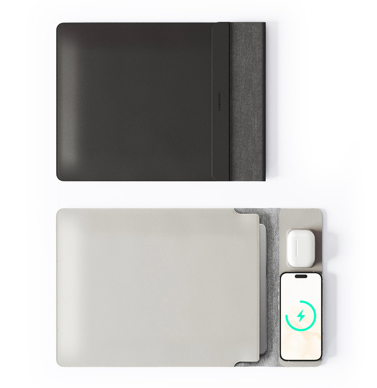 Upgrade your work and travel experience with our innovative NEXA laptop sleeve. This sleek and stylish accessory not only safeguards your laptop but also boasts a built-in dual wireless charger for your phones and earbuds, ensuring you stay powered up on the go. Additionally, it doubles as a portable deskmat or mouse pad, providing you with a versatile workspace wherever you are. Elevate your productivity and protect your tech with this multifunctional laptop sleeve.
