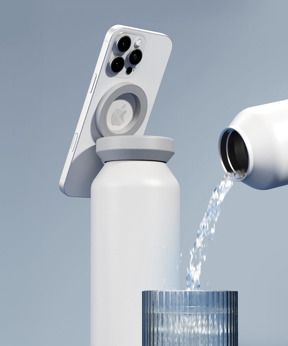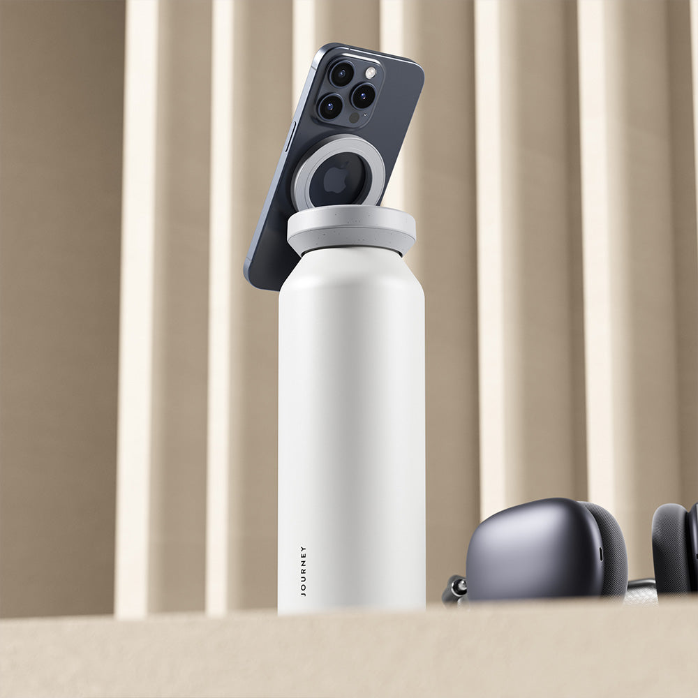 Yes. iPhone users can track REEVUS via the native Find My app on their iPhone (after they pair the bottle and phone). iPhone 12 users (and onwards) can also attach their phone to REEVUS’s magnetic (MagSafe-compatible) phone stand.