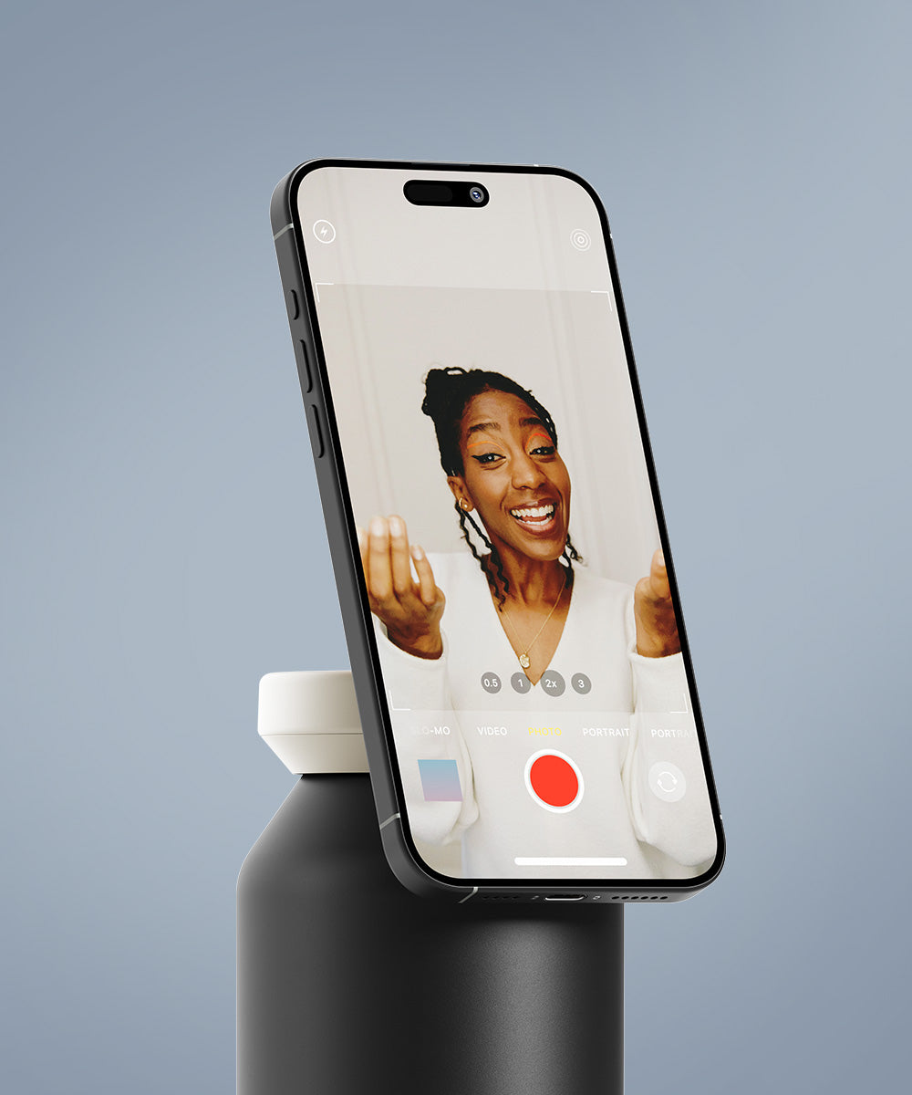 Yes. REEVUS is designed to work, empty or full. Track your bottle on your iPhone’s Find My app any time. Use it as a secure camera tripod, gimbal, or phone stand. It doesn’t matter if REEVUS is holding 700mls (23.6 ounces) or 0mls – it tracks, shoots, and screens!