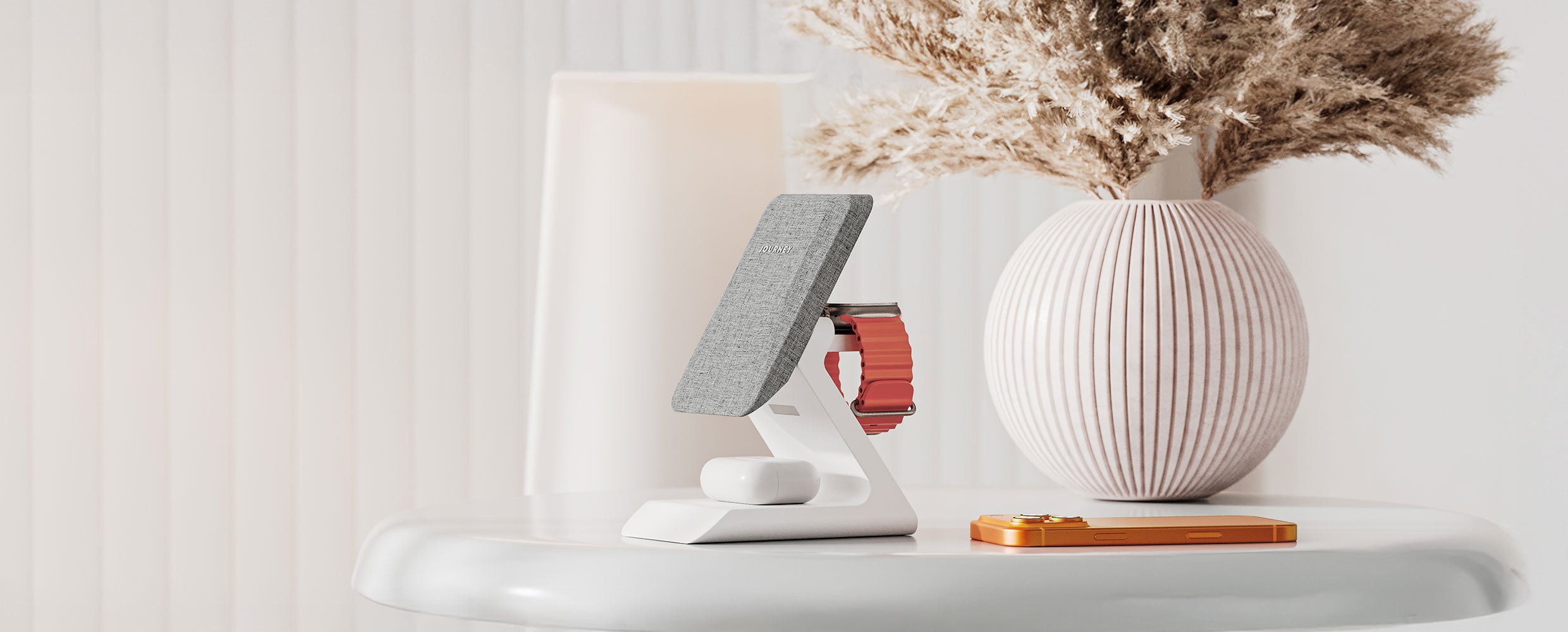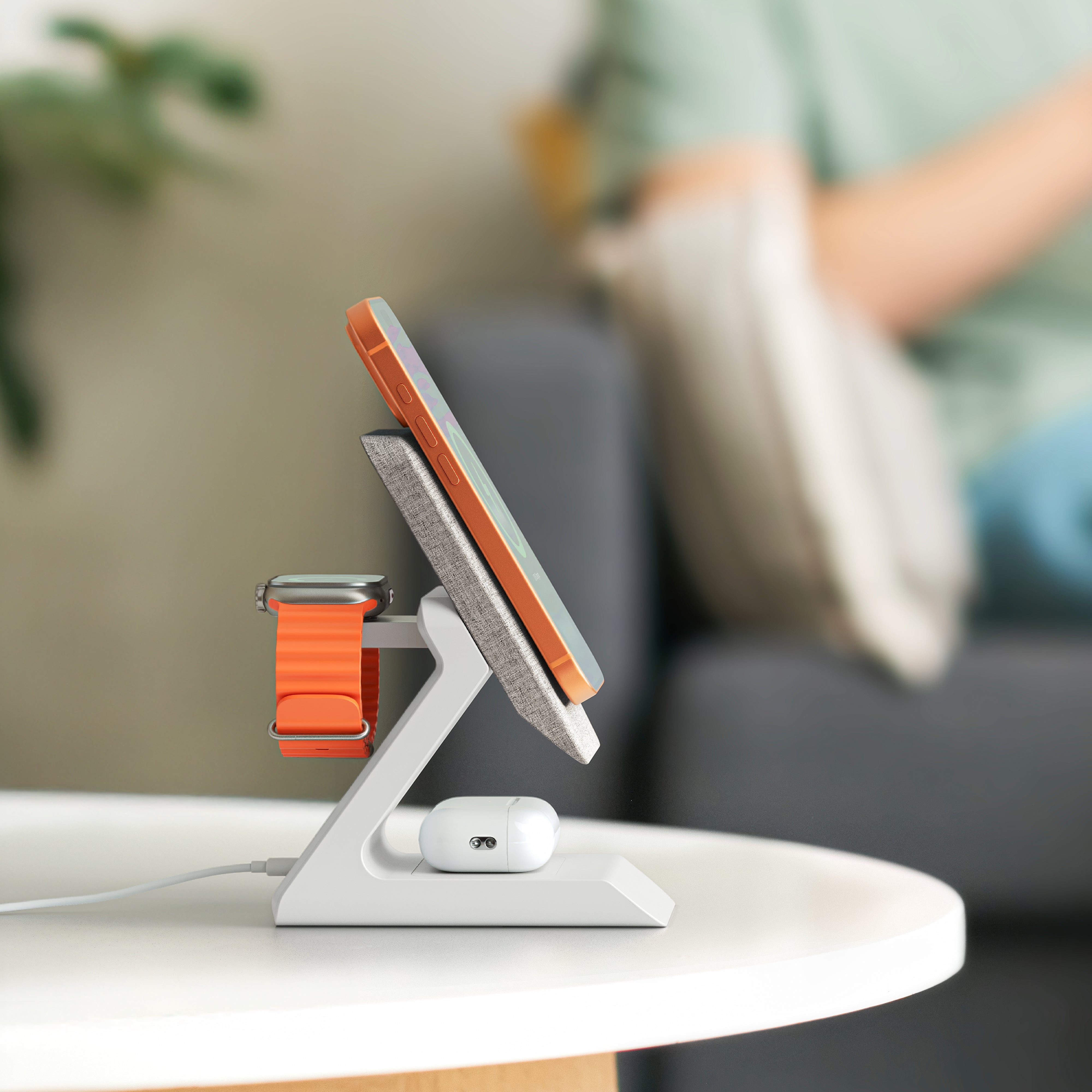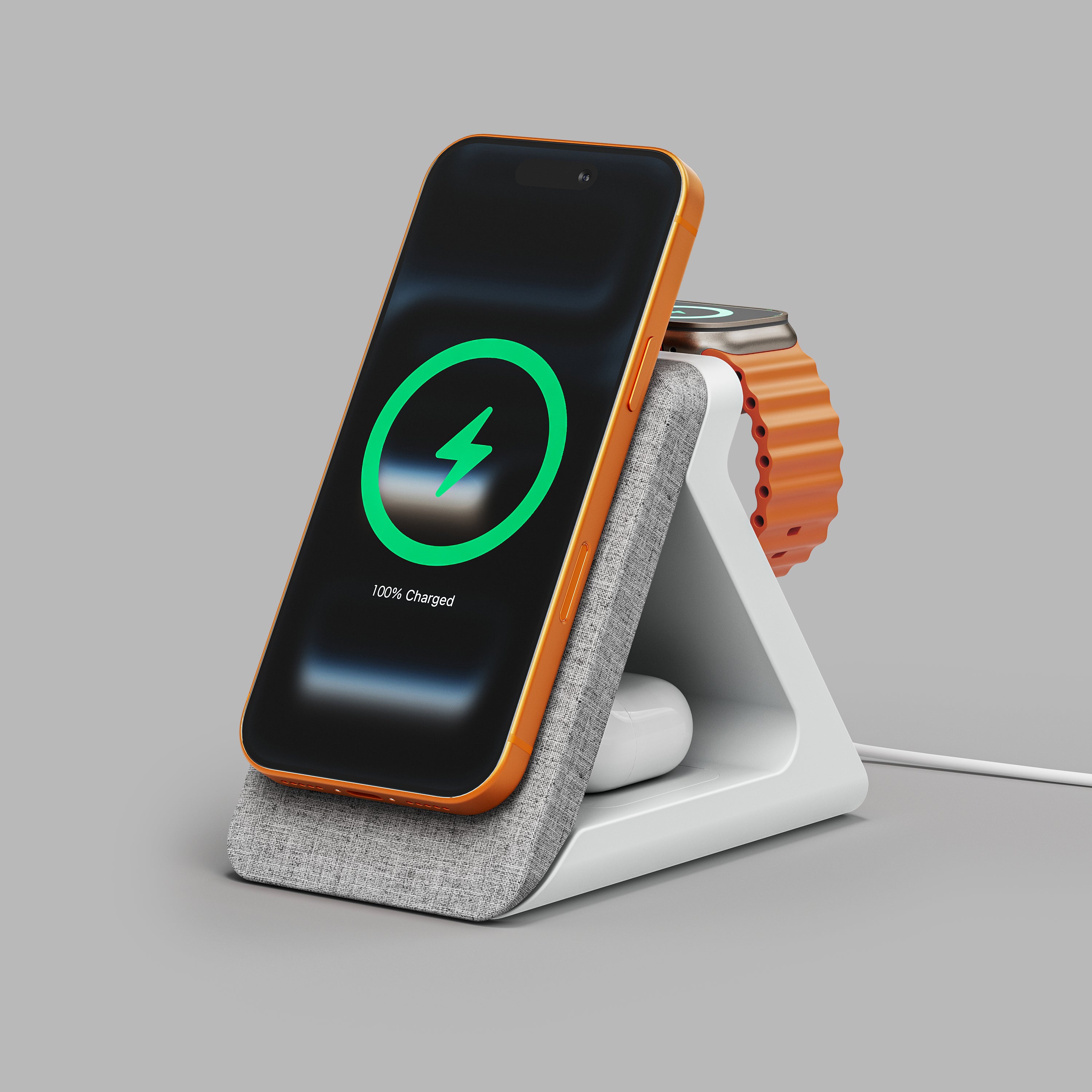 Summit is a sleek 3-in-1 charging station that combines cutting-edge technology with home decor elegance. Designed to fast charge your iPhone, Apple Watch, and AirPods simultaneously, Summit blends seamlessly into any space with its unique, stylish design. Say goodbye to cluttered cables and hello to convenience with this powerful, all-in-one charging solution.