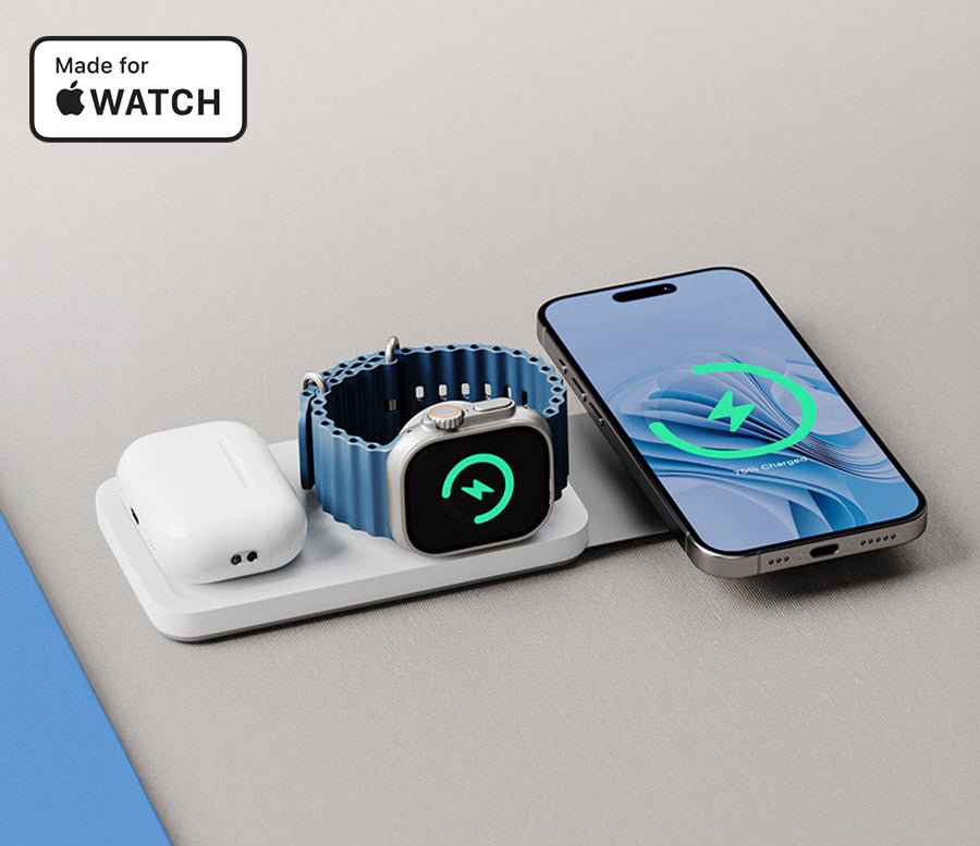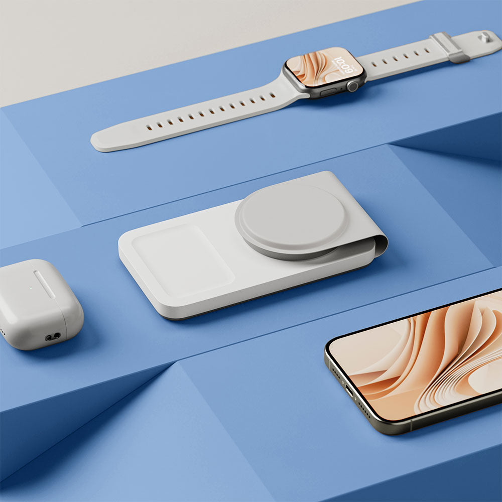 Introducing SWIV, the ultimate convenience in charging: our 3-in-1 wireless charging station. This sleek, foldable device effortlessly powers up your iPhone, Apple Watch, and AirPods simultaneously. Crafted with premium materials and Apple-certified technology, it guarantees safe, efficient, and stylish charging at home and on the go.